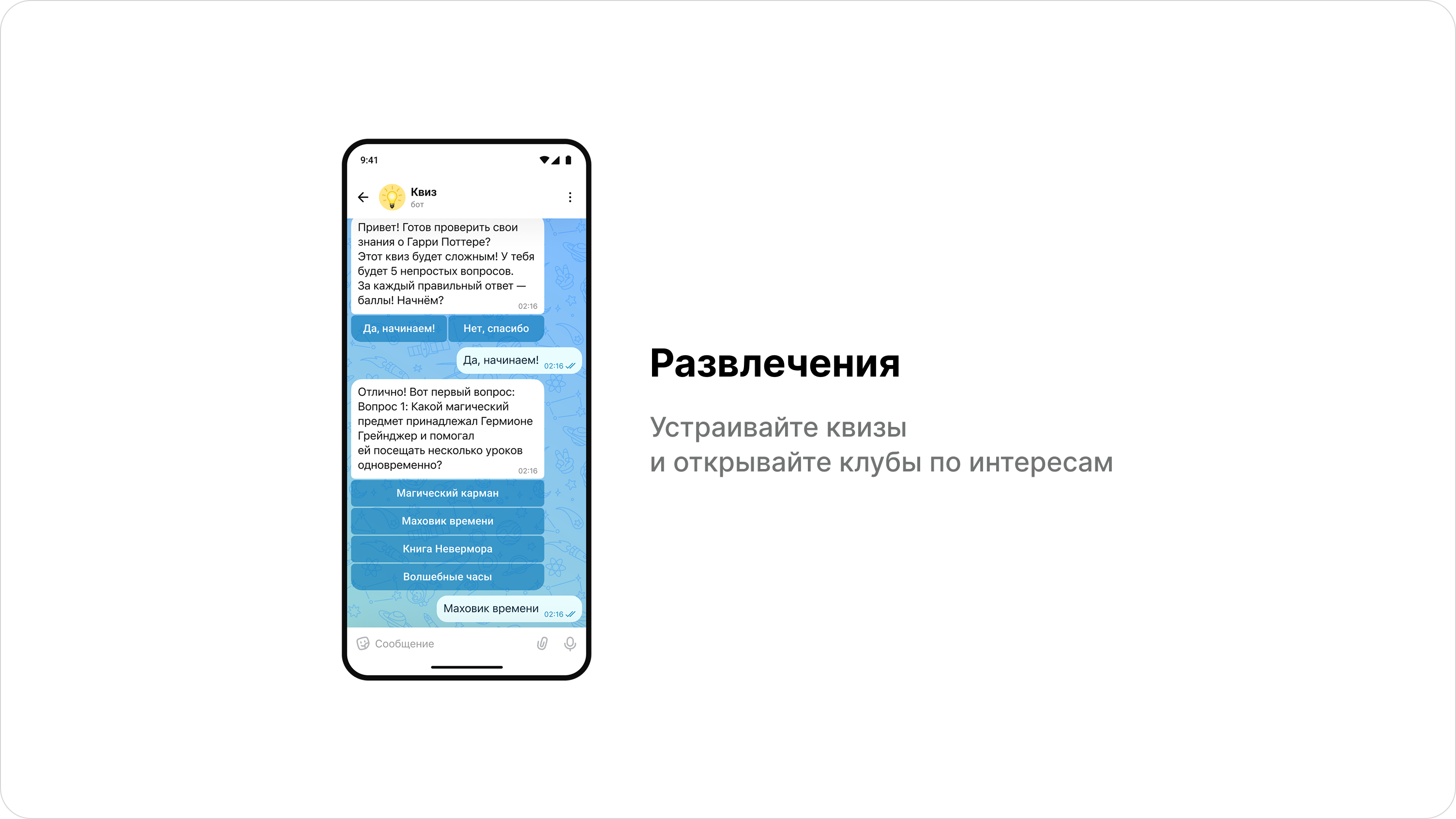 С помощью чат-ботов и мини-приложений в MAX можно вести бизнес, обучать, продавать и развлекать. Если вы никогда не программировали, соберите бота в конструкторе по шаблонам. С навыками разработки возможностей больше — добавьте к боту мини-приложение с быстрым доступом